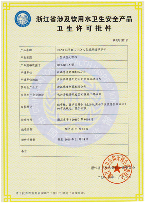 近日,德恩特系列凈水機(jī)經(jīng)國家權(quán)威部門產(chǎn)品與生產(chǎn)現(xiàn)場審核,符合【生活飲用水衛(wèi)生監(jiān)督管理辦法】的具體規(guī)定,批準(zhǔn)生產(chǎn)與銷售。