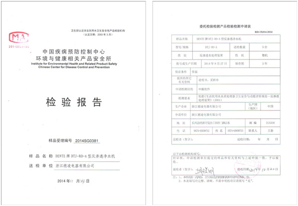 德恩特品牌全系凈水機(jī)已通過中國疾病預(yù)防控制中心環(huán)境與健康相關(guān)產(chǎn)品安全所檢驗(yàn)合格。本月底將全獲得凈水機(jī)生產(chǎn)國家衛(wèi)生批件。